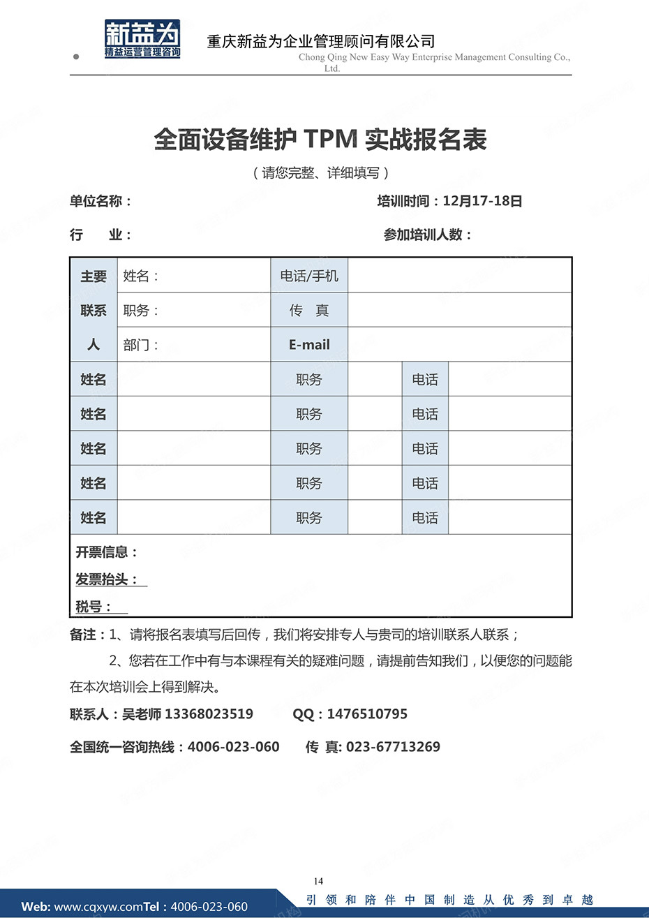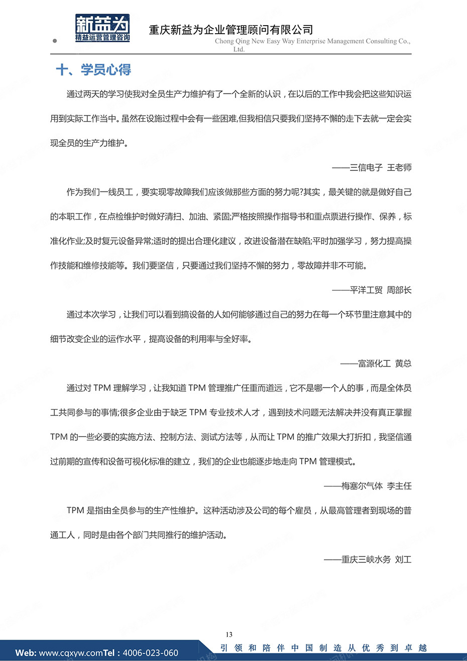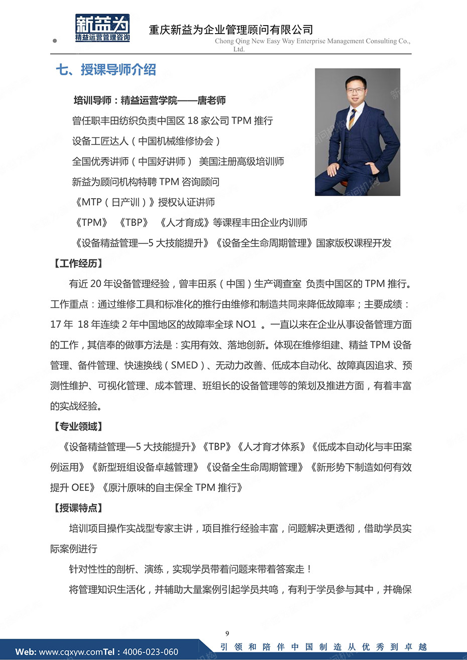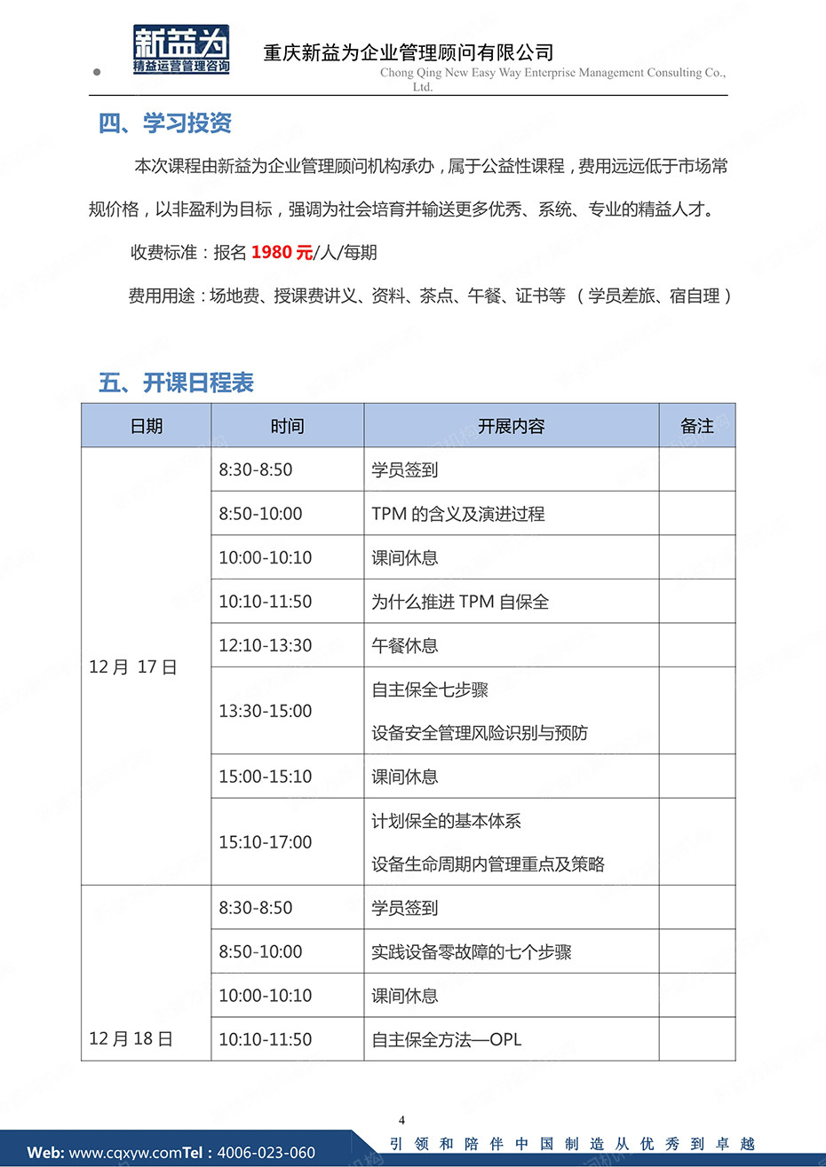 重慶2020.12 全面設備維護TPM實戰(zhàn)訓練營