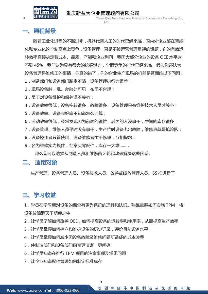 重慶2021.05 設(shè)備全生命周期管理與效率提升培訓(xùn)
