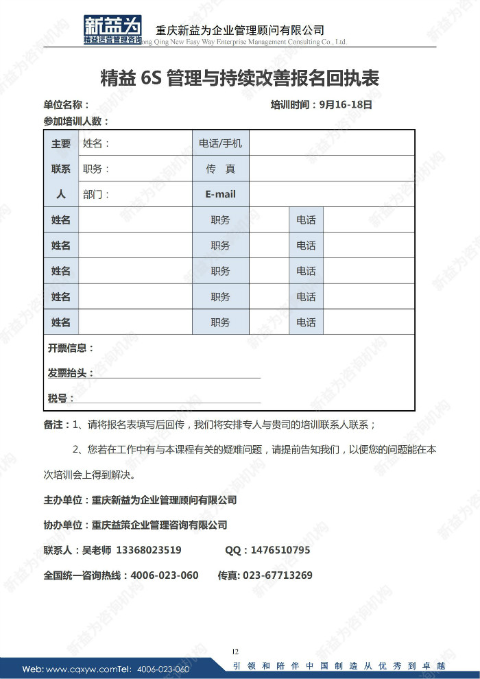 報名表-附件下載:精益6S管理與持續改善